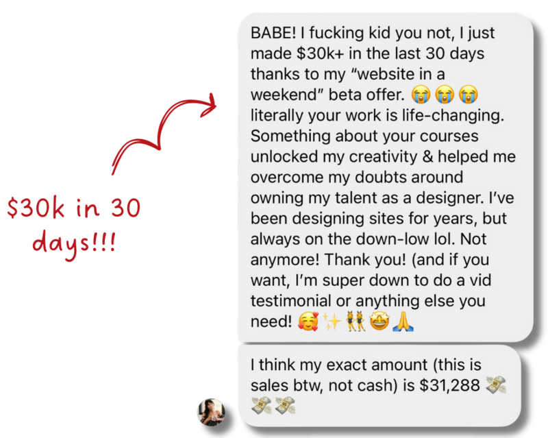 I taught myself web design on a little laptop in my tiny apartment, and through pure trial and error (and a lot of fucking up), I scaled my business to consistent $30K-$50K months.